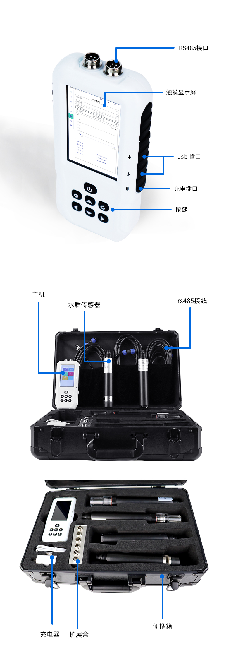 便携式多参数水质测定仪是一款电极法水质分析仪器,采用全数字电极检测,可检测水质叶绿素a和蓝绿藻两参数。仪器搭载自研ftiot操作系统,操作简单、性能稳定、测量准确、检测范围广,内置高容量充电锂电池,便于用户在野外、实验室随时进行水质检测工作。
