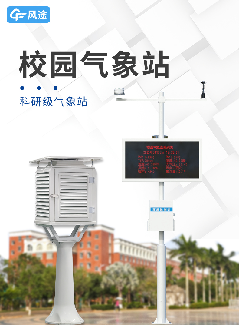 浏览次数:101校园教学气象站实现从幼儿园到高校大学全学段覆盖。针对不同年龄段教学需求,配备适配的传感器与设备。幼儿园阶段,以简单直观的温度、雨量传感器为主,通过趣味活动启蒙气象认知。中小学阶段,增加风速、风向、湿度等传感器,配合课程开展实验探究。高校大学层面,提供高精度、多功能设备,支持科研级气象观测与数据分析。所有设备数据可实时传输至管理平台,方便师生查看分析。该气象站助力各阶段科学教育,让学生在实践中掌握气象知识,培养科学思维与实践能力,为校园科学教学提供全面支持。