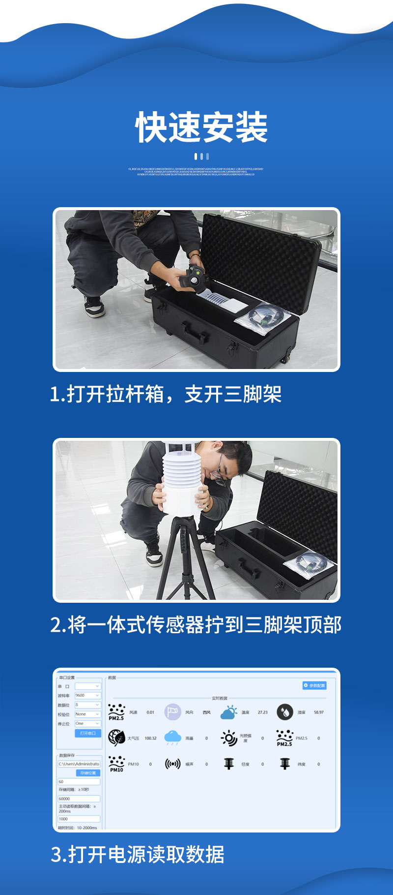 BQX5便携式气象站是一款高度集成、低功耗、可快速安装、便于野外监测使用的高精度自动气象观测设备。