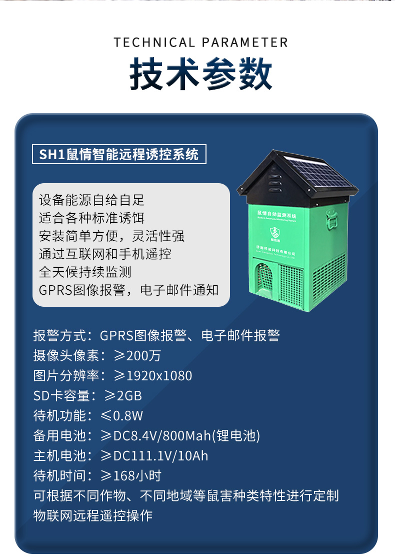 9、可根据不同作物、不同地域等鼠害种类特性进行定制10、物联网远程遥控操作